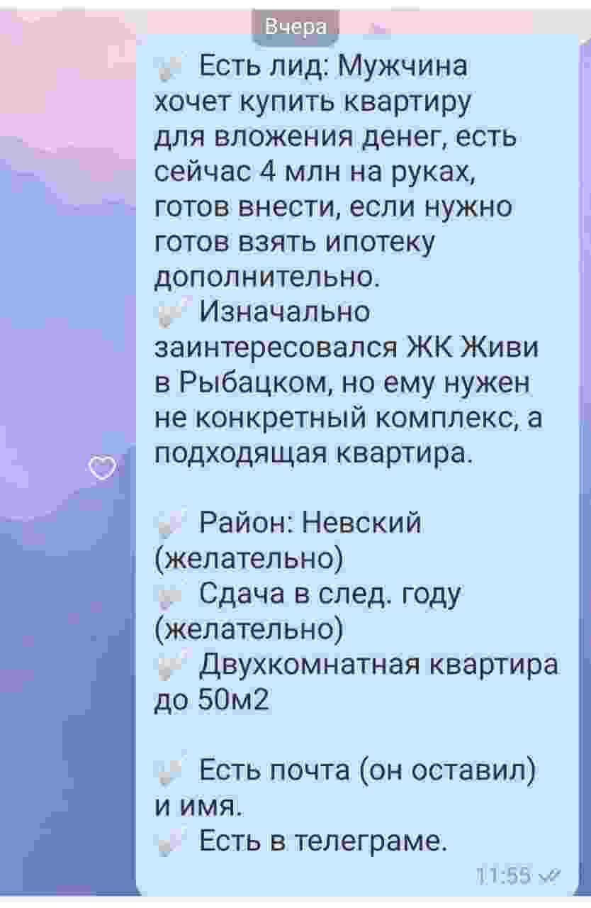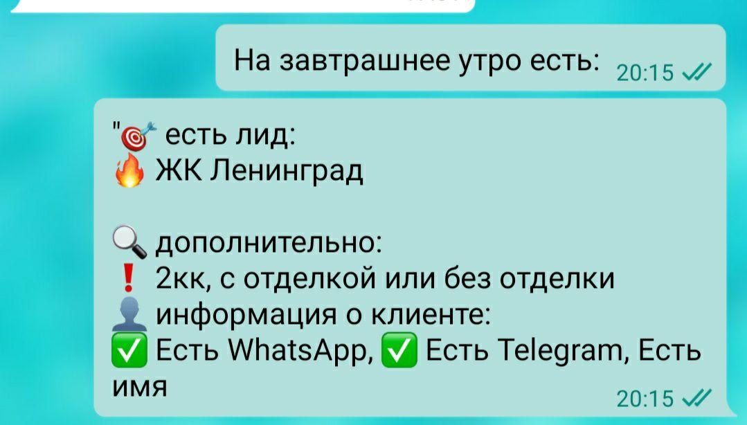 Мы присылаем уведомления в мессенджеры и ваши сотрудники (или вы сами) - успевают получать клиентов первыми на рынке.